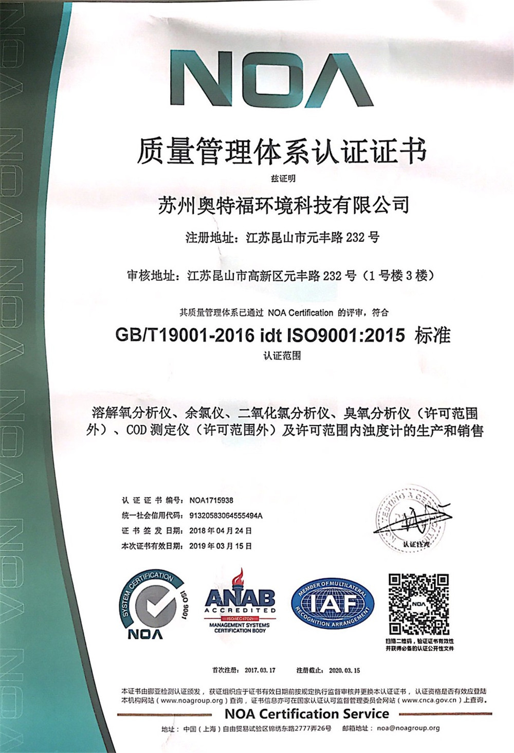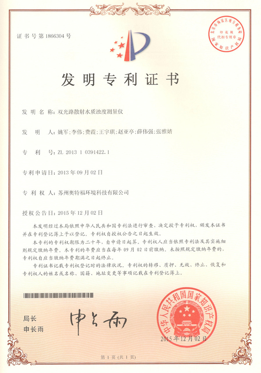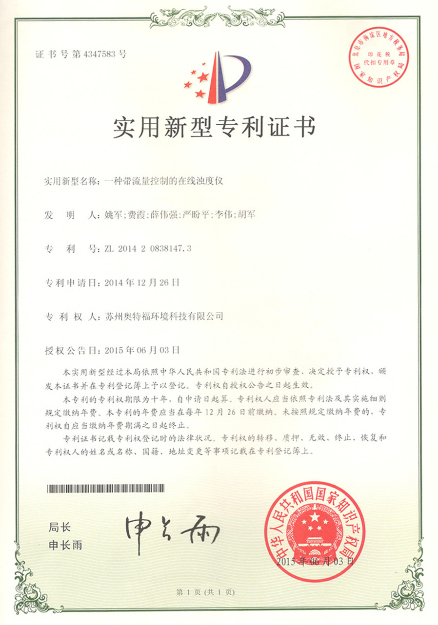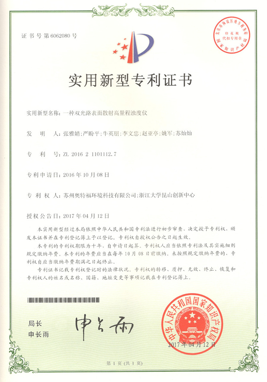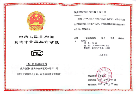 TM-6S濁度計正式獲得由昆山市市場監督管理局頒發的《中華人民共和國制造計量器具許可證》。